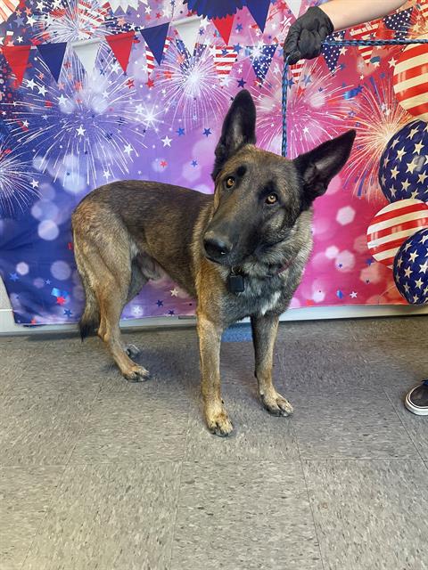 The shelter named me Bruce. I am a 4 year old neutered male brown & black Belgian Malinois German Shepherd Dog. I have been at the shelter since Saturday, July 26, 2025. Must provide proof of home ownership or landlord approval at the time of adoption.