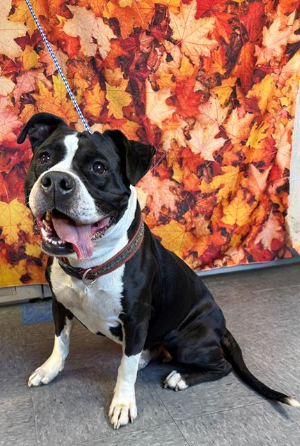 The shelter named me Chonk. I am a 4 year old male black & white Pit Bull Terrier. I have been at the shelter since Friday, October 3, 2025. Must provide proof of home ownership or landlord approval at the time of adoption.