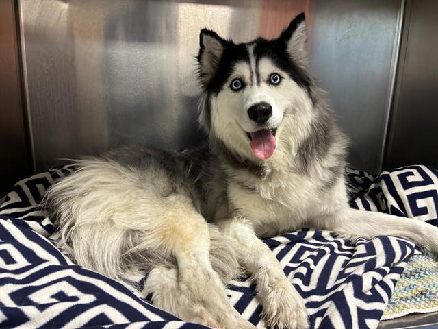 The shelter named me Coal. I am a 7 year old male black smoke Akita Mix. I have been at the shelter since Friday, December 20, 2024. Must provide proof of home ownership or landlord approval at the time of adoption.